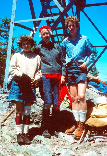 It took Cal 50 years to climb all the 4,000 footers for the first time, from Madison and Washington in 1920 to Owl’s Head in 1970. She climbed them all again, after she had turned 70 (1972 to 1977). I was pleased and honored on a day in July 1977 when I, Cal, and her two grandchildren, Shawn and Sara Wilbur, stood atop Mt. Carrigain, and celebrated the 6-year feat of endurance and pleasure.